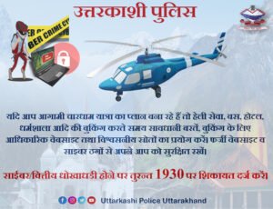 उत्तरकाशी पुलिस आपके द्वार’ के अन्तर्गत उत्तरकाशी पुलिस ने मसीह दिलासा स्कूल में आयोजित किया जनजागरुकता शिविर* “पुलिस आपके द्वार” कार्यक्रम के अन्तर्गत उत्तरकाशी पुलिस द्वारा विभिन्न गांव-मोहल्लों, स्कूल-कॉलेज, मेले-त्योहारों व प्रतिष्ठित संस्थानों पर जनसंवाद तथा जागरुकता कार्यक्रम आयोजित कर समाज विशेषकर युवा वर्ग को नशा, साइबर, यातायात, महिला अपराध जैसे सामाजिक कुरीतियों के प्रति…