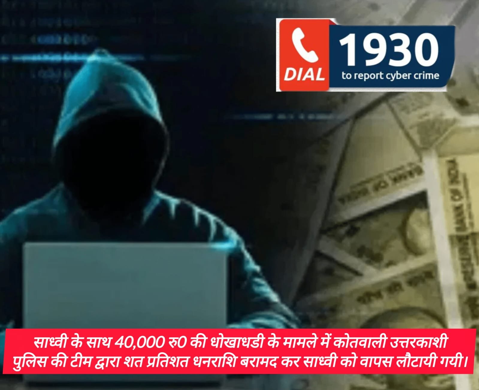 पूर्व में साध्वी के साथ हुयी 40,000 रुपये/ की साईबर धोखाधड़ी की शिकायत पर पुलिस द्वारा कोतवाली उत्तरकाशी पर धारा 318(4) बीएनएस के तहत अभियोग पंजीकृत किया गया था। *कोतवाली उत्तरकाशी पुलिस की टीम द्वारा उक्त मामले में साइबर सैल उत्तरकाशी के सहयोग/ तकनीकी सहायता लेते हुये धोखाधड़ी हुये 40 हजार की शत्-प्रतिशत धनराशि बरामद कर कल 6 फरवरी 2026 को पीडिता को वापस करवायी गयी है।*